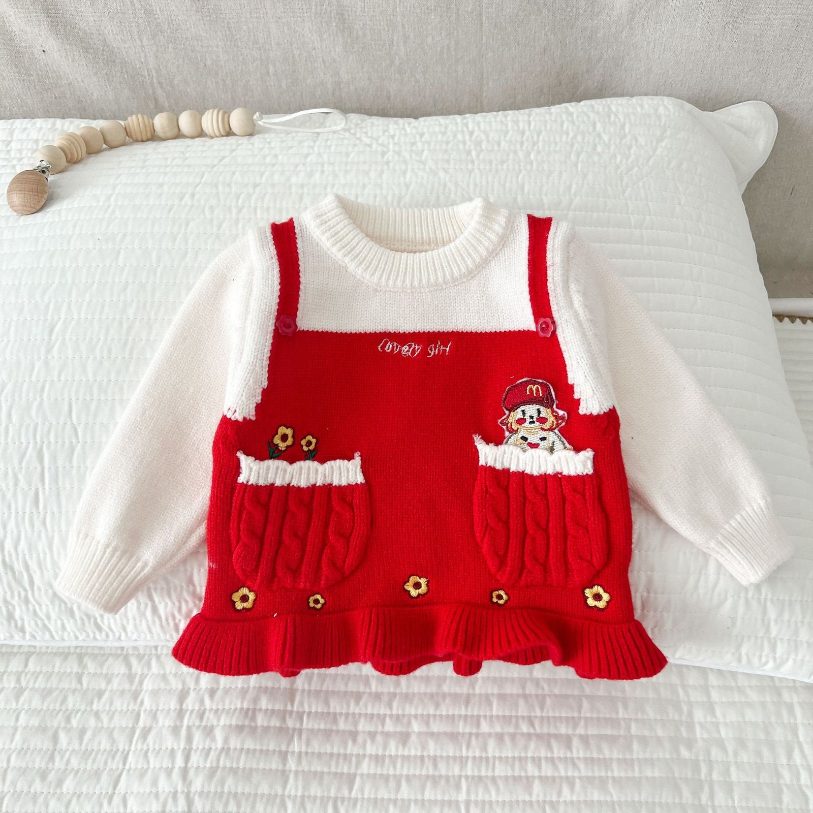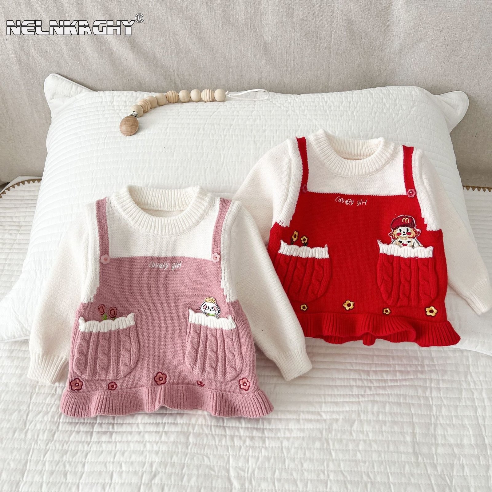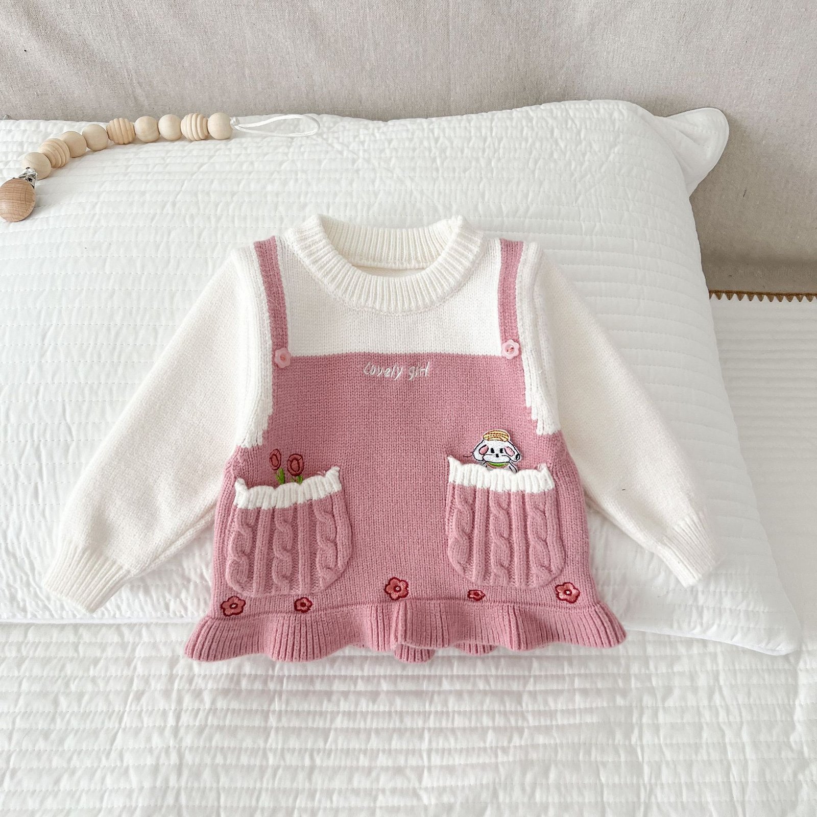 2023 Autumn New In Kids Baby Girls Full Sleeve Cartoon Knitted Sweater Infant Toddler Clothing Newborn Cotton Bottoming sweater